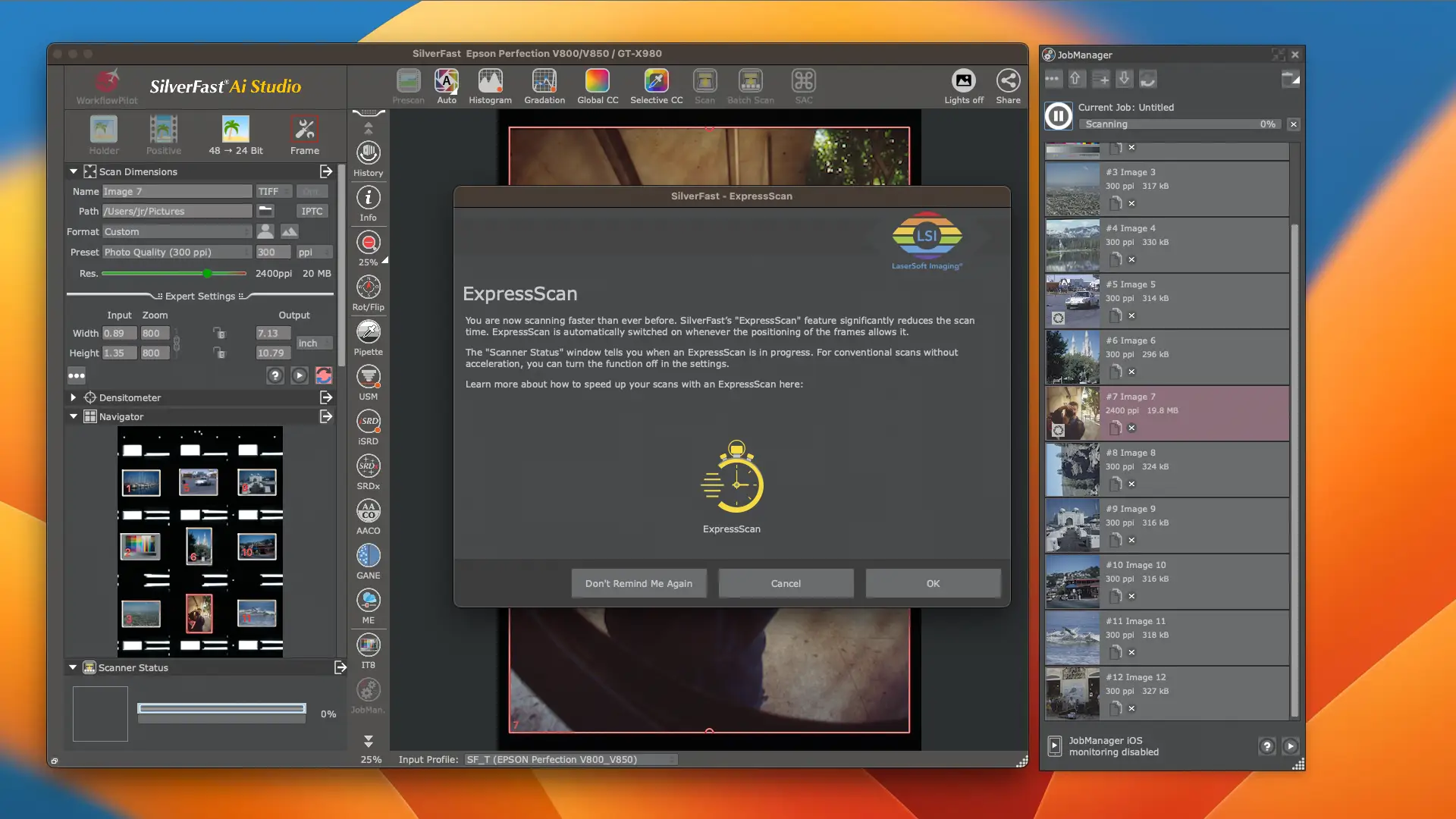 The JobManager feature in SilverFast enables you to pay close attention to these key factors, so efficient batch scanning will save you time and increase your productivity, while ensuring that the resulting scans are of high quality and accuracy.