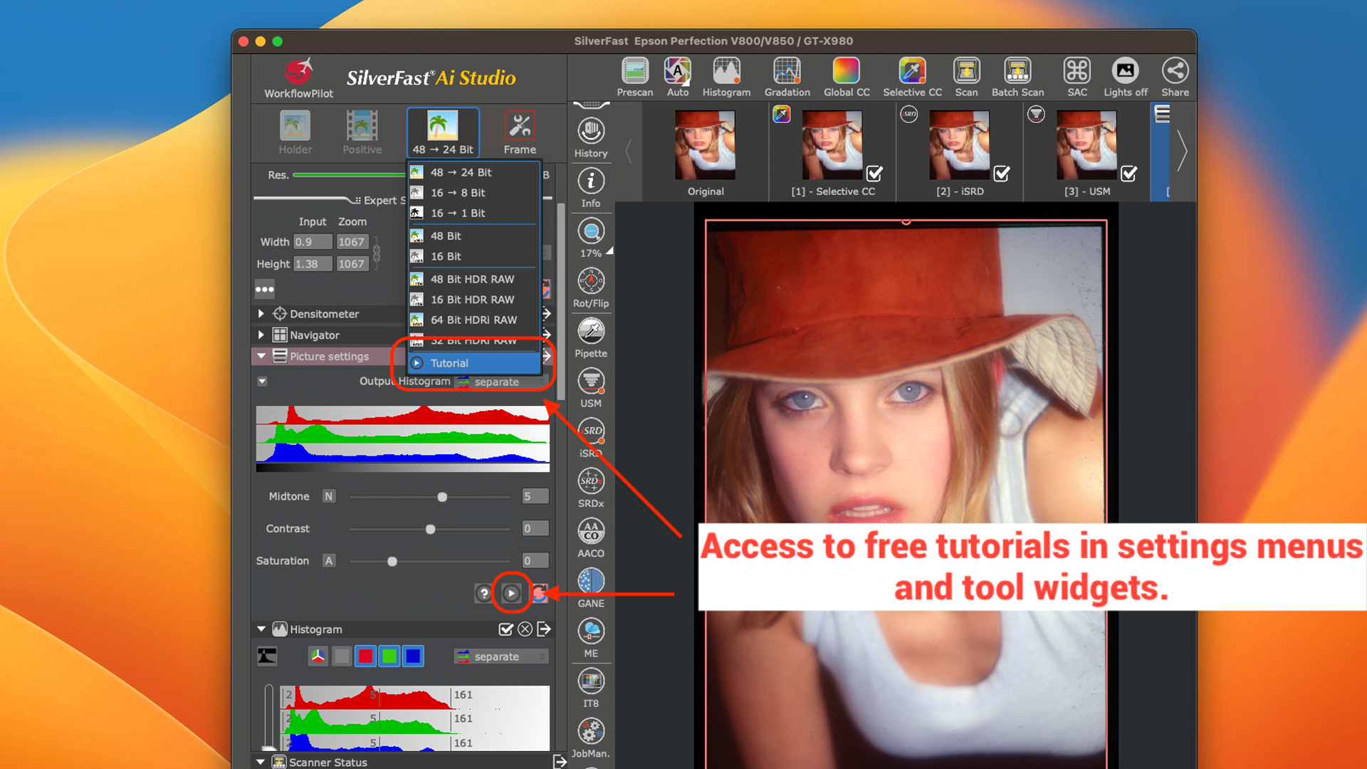 One of the coolest things about SilverFast® 9 is it plays nice with a ton of scanners, even the old school ones. So instead of dropping cash on new gear, just keep using what you already have. And even if you’re a scanning newbie, don’t sweat it – it’s super easy to get the hang of thanks to user-friendly features like the WorkflowPilot and helpful tutorial videos.